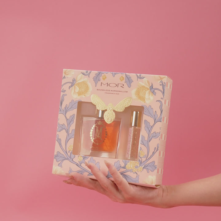 Discover the sweet allure of Marshmallow with this gift set duo containing a Marshmallow Perfume Oil and Eau de Parfum. Ideal for layering, the concentrated oil and long-lasting perfume captivates and delights.
