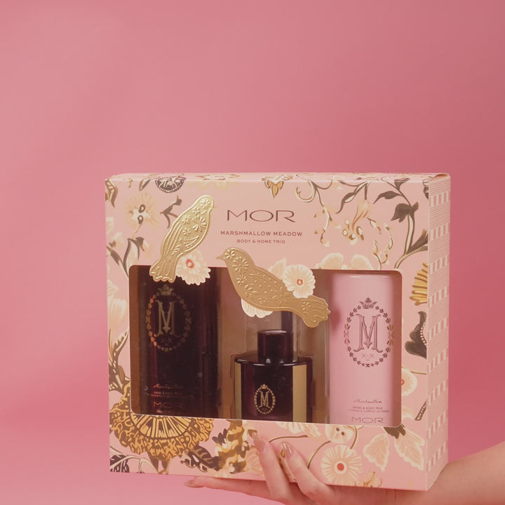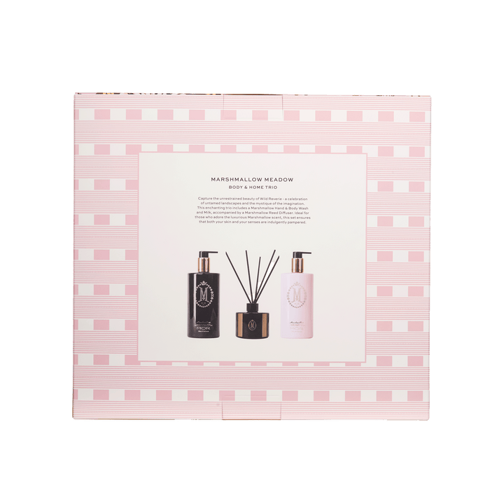 - Includes 1 x Marshmallow Hand & Body Wash 500ml, 1 x Marshmallow Hand & Body Milk 500ml & Marshmallow Reed Diffuser 80ml