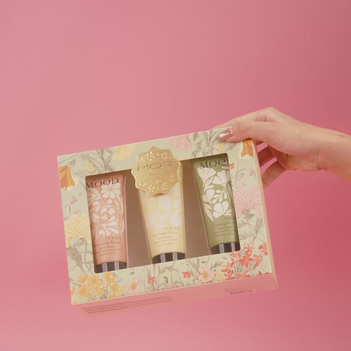 - Includes 3 x Mood by MOR 100ml Hand Creams: Enchanting Blooms, Uplifting Citrus & Calming Forest